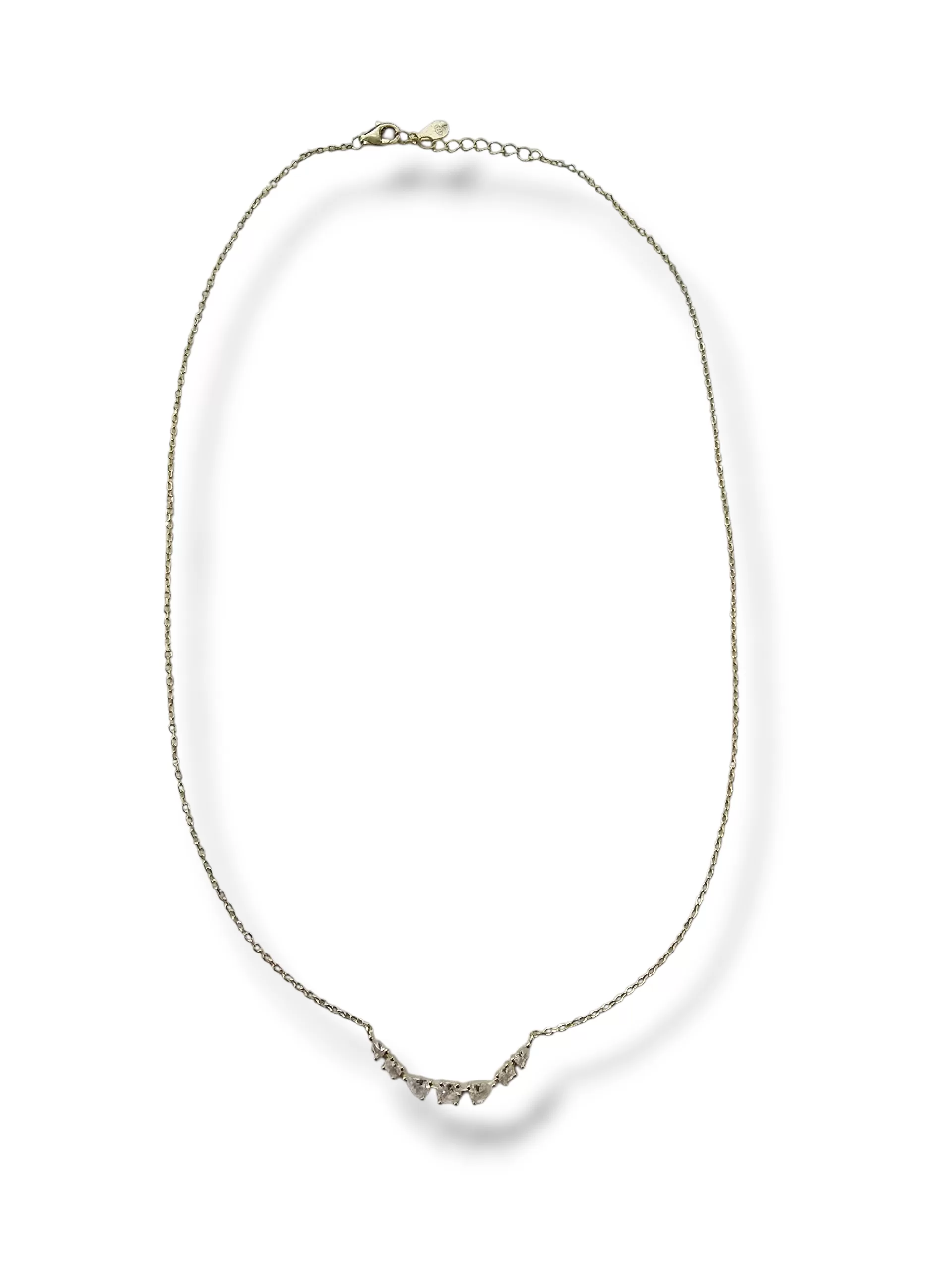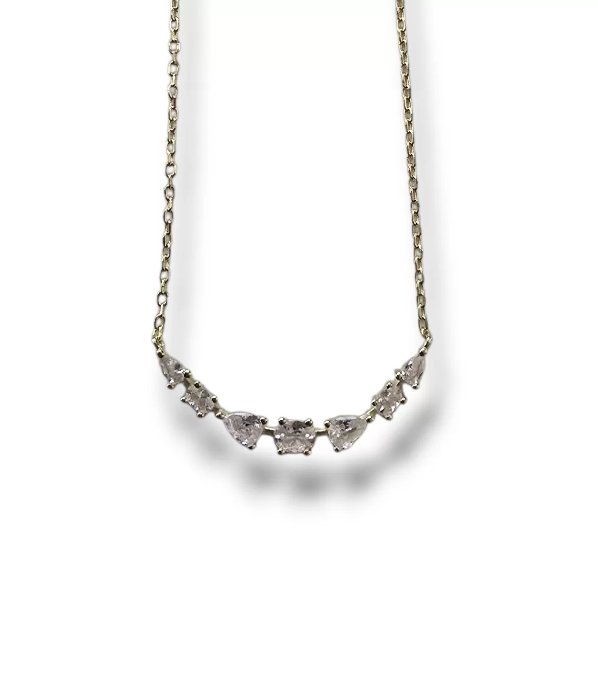 Colar malha Cadeado + Meia lua de zircónias brancas diversos formatos (3.8cm x 0.30cm)